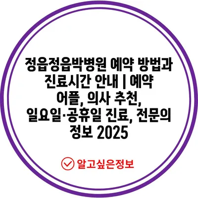 정읍정읍박병원 예약 방법과 진료시간 공지 | 예약 어플, 의사 추천, 일요일·공휴일 진료, 전연락 정보 2025 에 대해 자주 묻는 질문 TOP 5