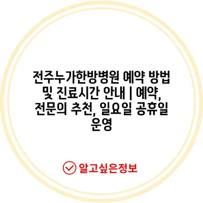 전주누가한방병원 예약 방법 및 진료시간 공지 | 예약, 전연락 추천, 일요일 공휴일 운영 에 대해 자주 묻는 질문 TOP 5