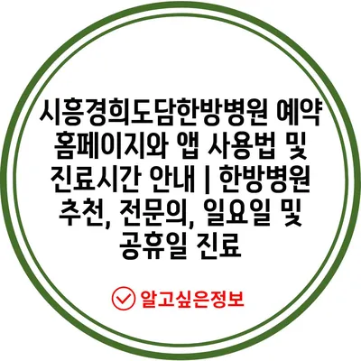 ✅ 시흥경희도담한방병원의 예약 방법과 진료시간을 쉽게 알아보세요.