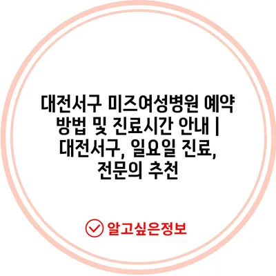 ✅ 대전서구 미즈여성병원의 진료시간과 예약 방법을 간편하게 알아보세요.