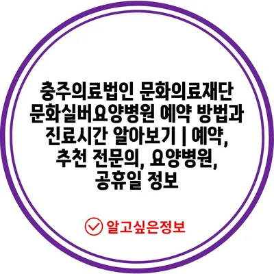 ✅ 충주의료법인 문화실버요양병원의 예약 방법과 진료시간을 자세히 알아보세요.