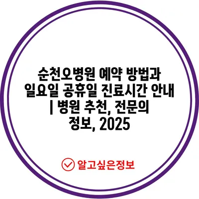 순천오병원 예약 방법과 일요일 공휴일 진료시간 공지 | 병원 추천, 전연락 정보, 2025 에 대해 자주 묻는 질문 TOP 5