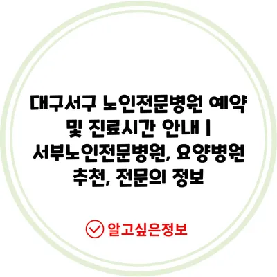 대구서구 노인전문병원 예약 및 진료시간 공지 | 서부노인전문병원, 요양병원 추천, 전연락 정보 에 대해 자주 묻는 질문 TOP 5