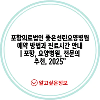 포항의료법인 좋은선린요양병원 예약 방법과 진료시간 공지 | 포항, 요양병원, 전연락 추천, 2025″ 에 대해 자주 묻는 질문 TOP 5