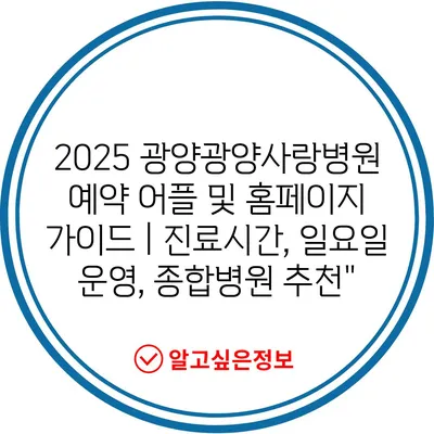 2025 광양광양사랑병원 예약 어플 및 홈페이지 설명서 | 진료시간, 일요일 운영, 종합병원 추천에 대해 자주 묻는 질문 TOP 5
