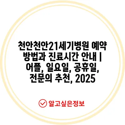 천안천안21세기병원 예약 방법과 진료시간 공지 | 어플, 일요일, 공휴일, 전연락 추천, 2025 에 대해 자주 묻는 질문 TOP 5