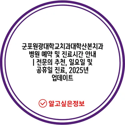 군포원광대학교치과대학산본치과병원 예약 및 진료시간 공지 | 전연락 추천, 일요일 및 공휴일 진료, 2025년 업데이트에 대해 자주 묻는 질문 TOP 5