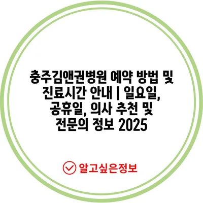 ✅ 충주김앤권병원의 예약 방법과 진료시간을 자세히 알아보세요.