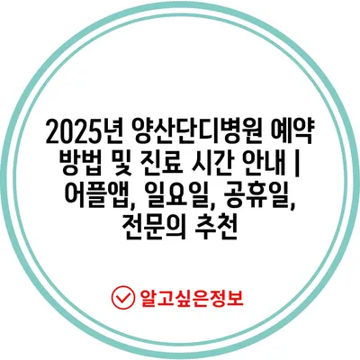 ✅ 양산단디병원 예약 시스템을 간편하게 알아보세요!