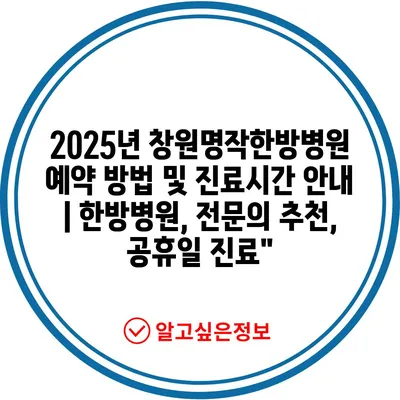 2025년 창원명작한방병원 예약 방법 및 진료시간 공지 | 한방병원, 전연락 추천, 공휴일 진료에 대해 자주 묻는 질문 TOP 5