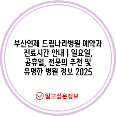 부산연제 드림나라병원 예약과 진료시간 공지 | 일요일, 공휴일, 전연락 추천 및 유명한 병원 정보 2025에 대해 알아보겠습니다.