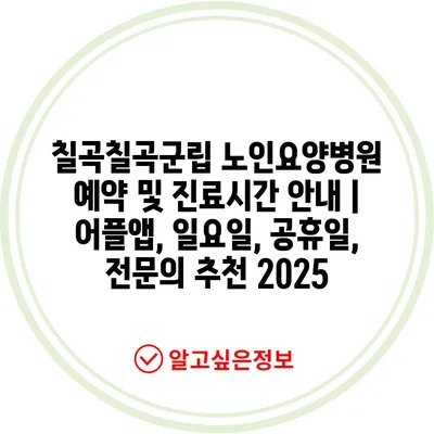 ✅ 칠곡군립 노인요양병원의 예약 방식과 진료시간을 상세히 알아보세요.