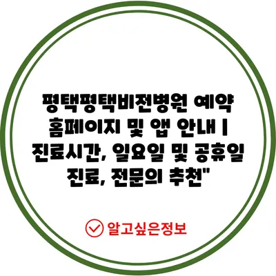 ✅ 평택비전병원 예약 방법과 중요한 진료 정보를 지금 바로 알아보세요.