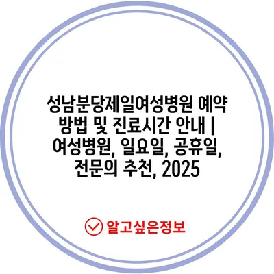 성남분당제일여성병원 예약 방법 및 진료시간 공지 | 여성병원, 일요일, 공휴일, 전연락 추천, 2025 에 대해 자주 묻는 질문 TOP 5