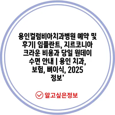 용인컬럼비아치과병원 예약 및 후기| 임플란트, 지르코니아 크라운 비용과 당일 원데이 수면 공지 | 용인 치과, 보험, 뼈이식, 2025 정보’ 에 대해 자주 묻는 질문 TOP 5