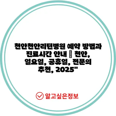천안천안리턴병원 예약 방법과 진료시간 공지 | 천안, 일요일, 공휴일, 전연락 추천, 2025에 대해 알아보겠습니다.