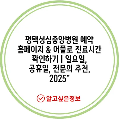 평택성심중앙병원 예약 홈페이지 & 어플로 진료시간 확인하기 | 일요일, 공휴일, 전연락 추천, 2025